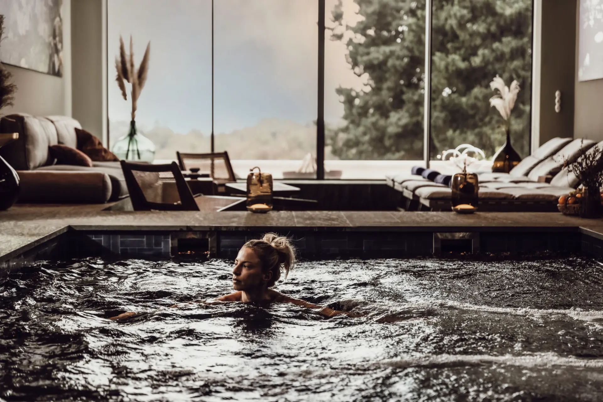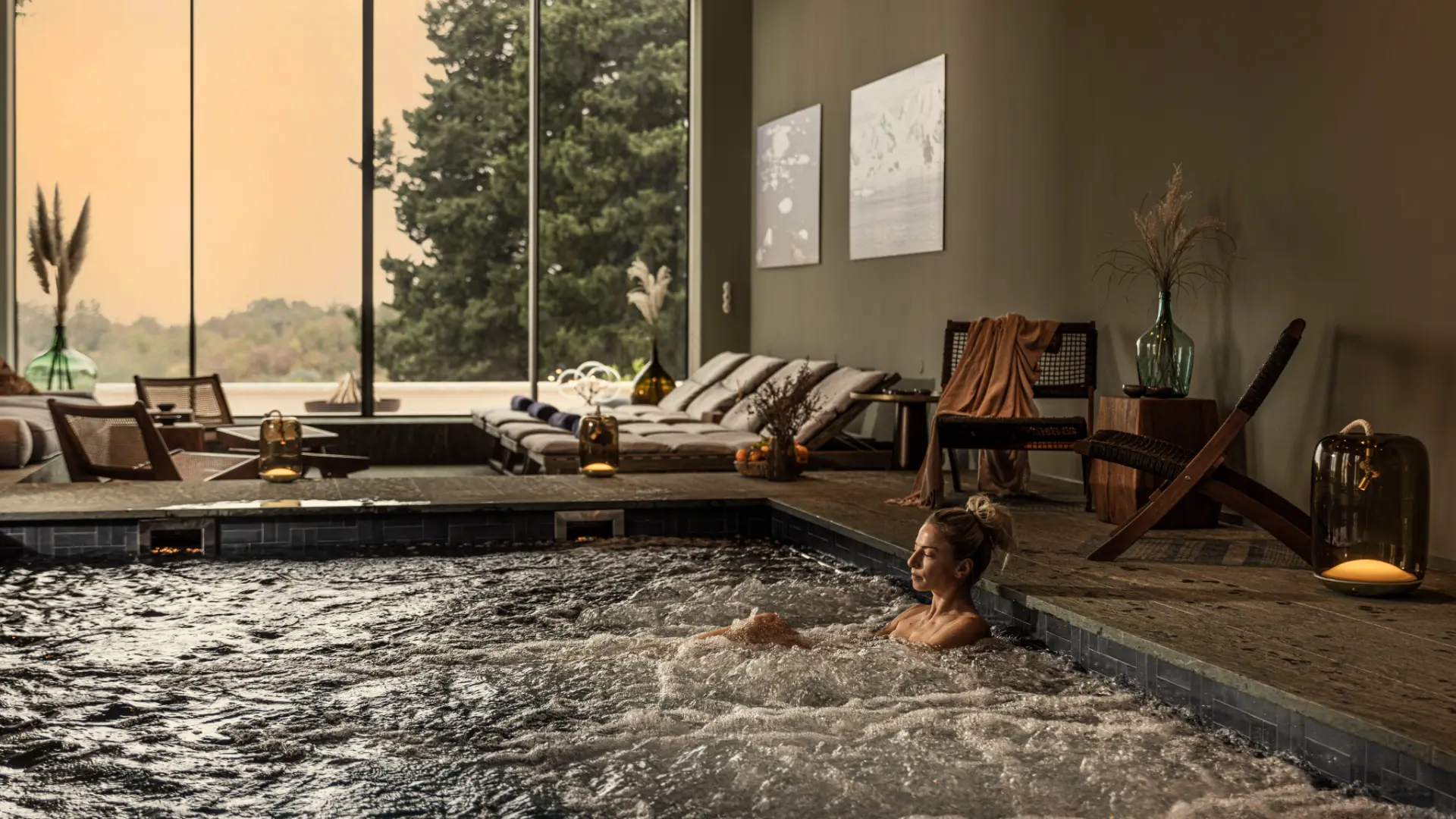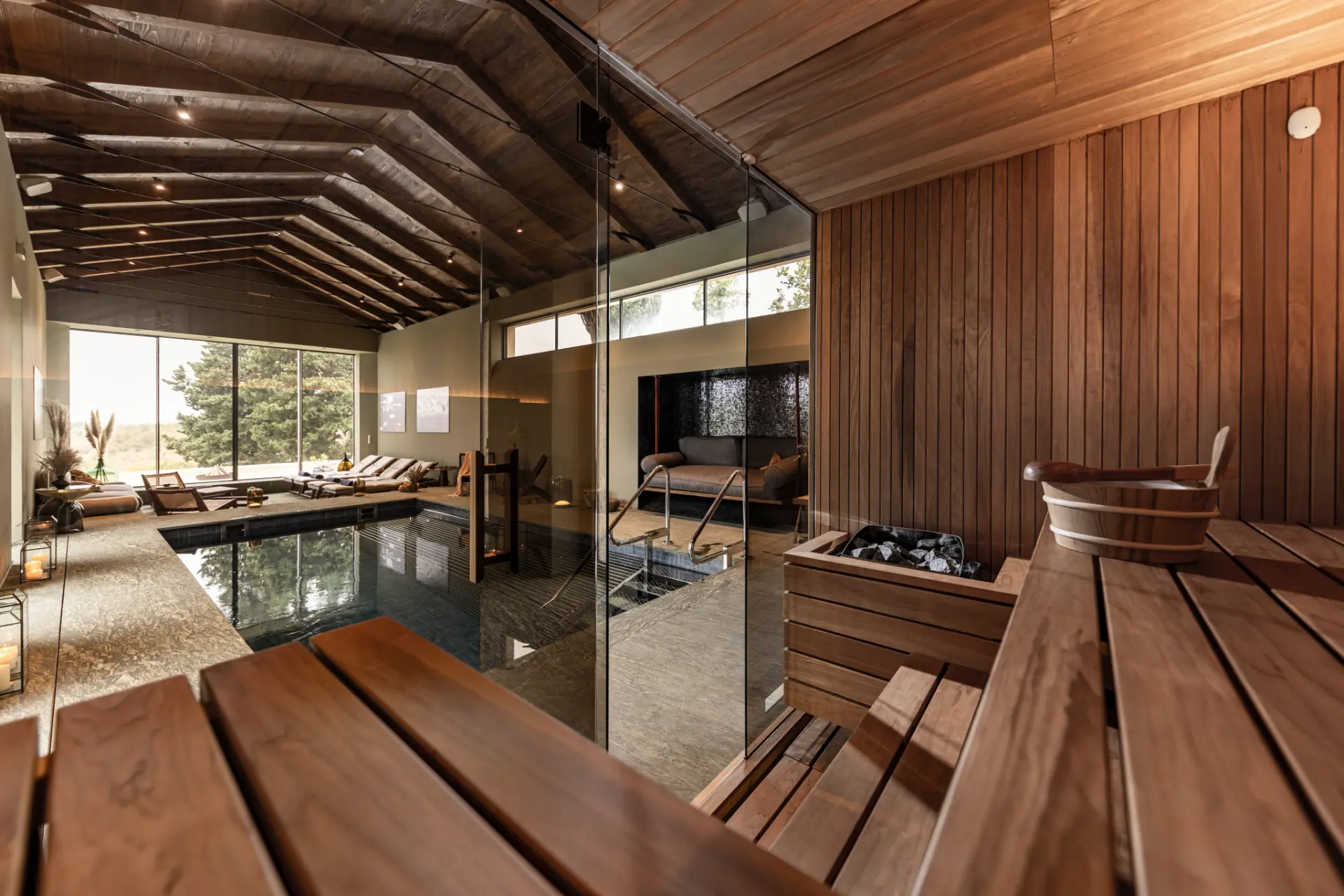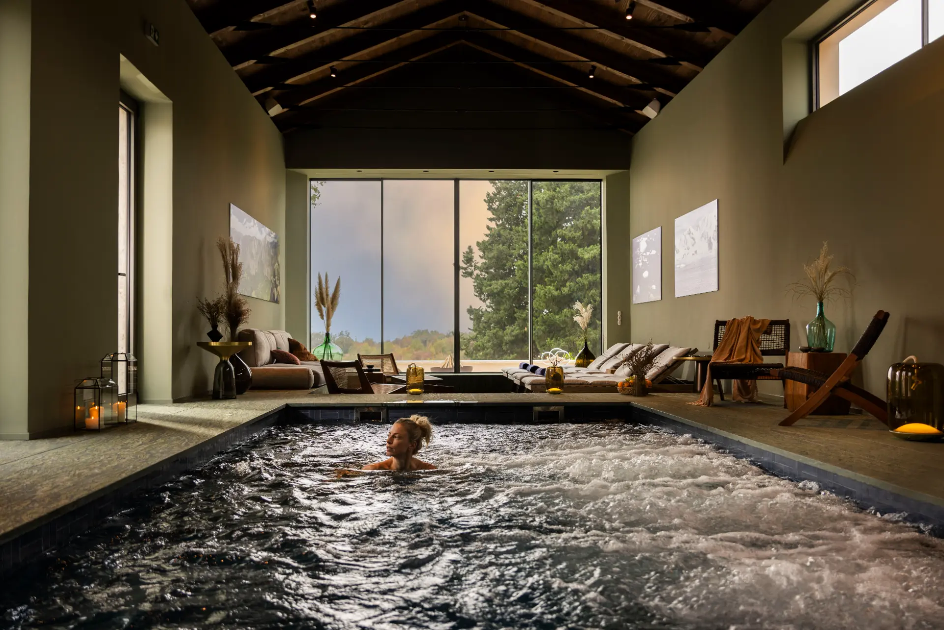 - Heated overflow swimming pool (9x15m) with fresh water and hydromassage